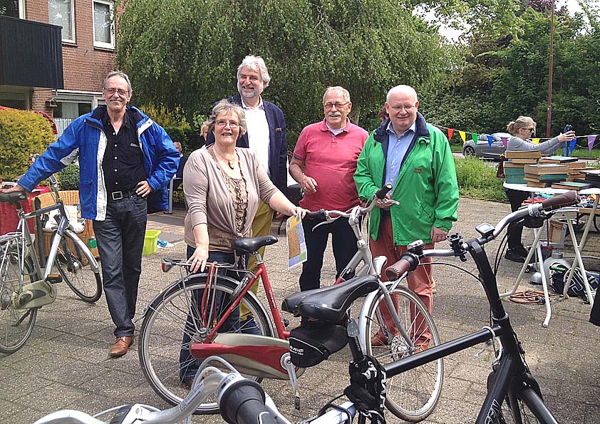 V.l.n.r. Voorzitter van het wijknetwerk René Hansen, Organisator Renée Blom, wethouder Peter Snoeren, organisator Rob Rooijackers en burgemeester Frans Backhuijs fietsten een deel van de route.