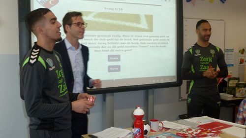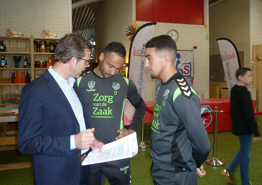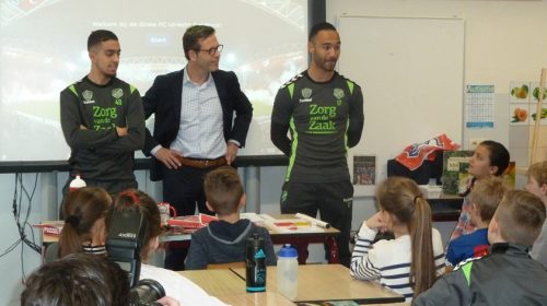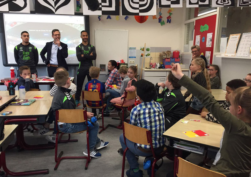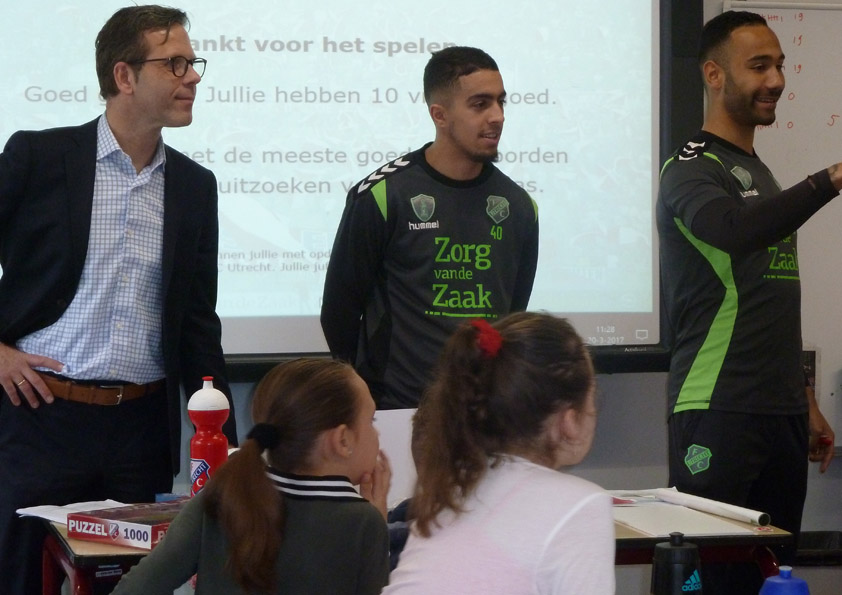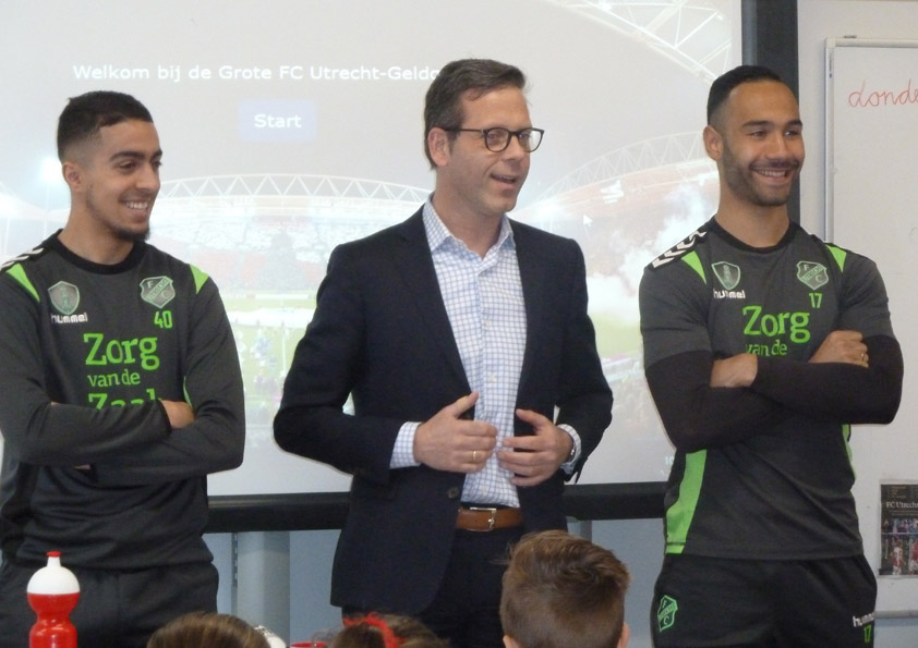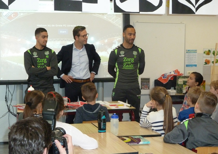 De FC Utrecht spelers voor de klas op de Lucas Galecop