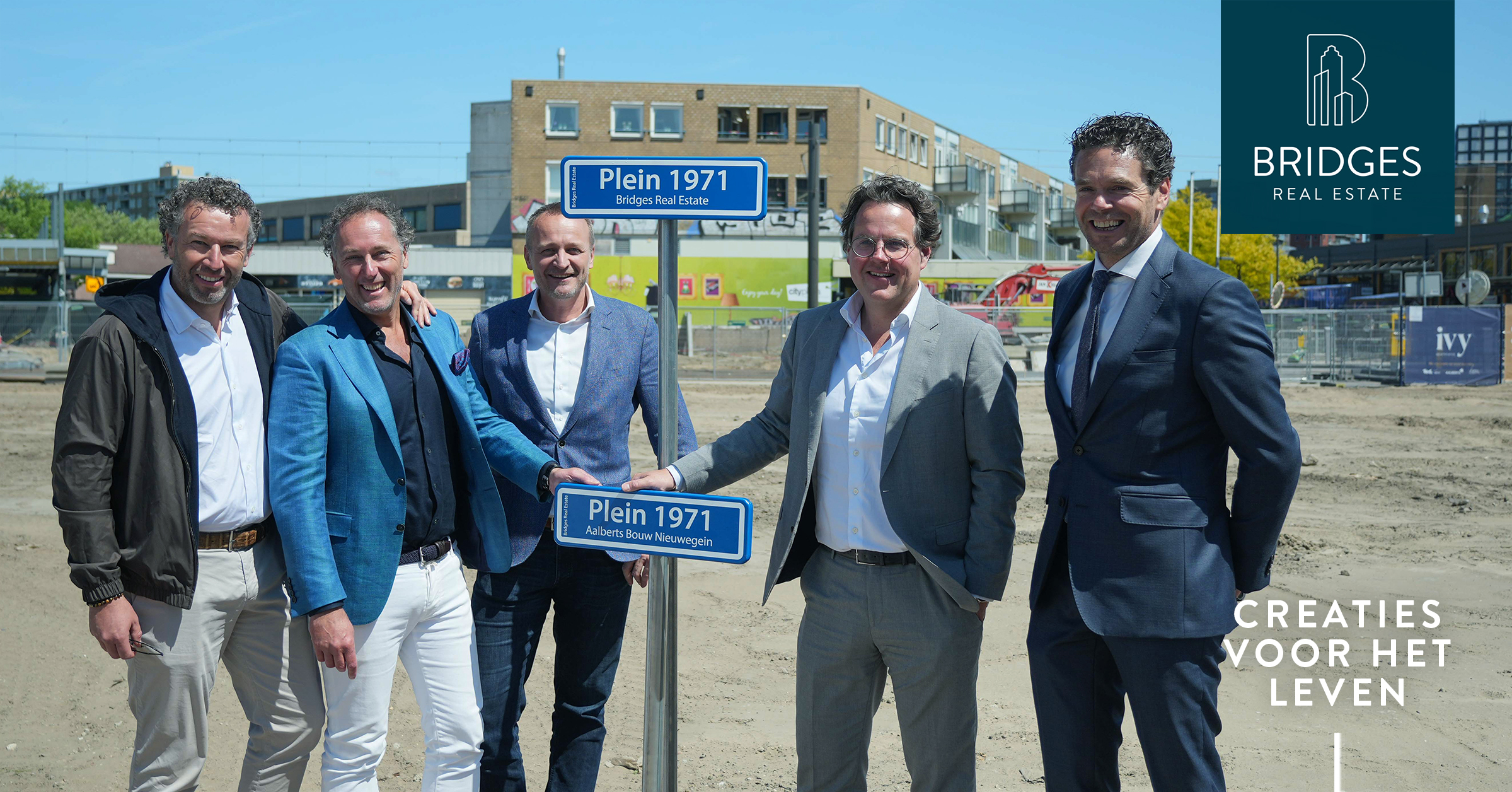 Een feestelijke mijlpaal voor Bridges Real Estate: op woensdag 11 mei 2022 is het slaan van de eerste paal van nieuwbouwproject ‘ivy Apartments’ gevierd. Hiermee is de bouw van 99 middeldure huurappartementen in het hart van Nieuwegein officieel van start gegaan. Ook de straatnaam is onthuld: Plein 1971, een verwijzing naar het ontstaansjaar van de gemeente Nieuwegein. De ontwikkeling is onderdeel van de totale vernieuwing van het Stationsgebied in City Nieuwegein en een samenwerking van Bridges met de provincie Utrecht en gemeente Nieuwegein. De oplevering van de woningen wordt begin 2024 verwacht.