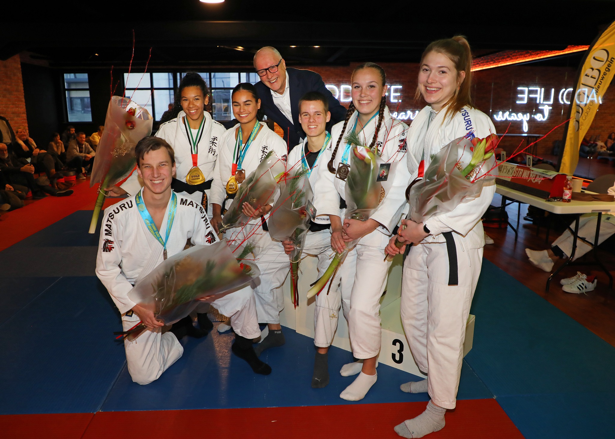 De gemeente feliciteert de winnende jiu-jitsuka’s van sportclub De Mix/BSP Holland. Zij sleepten op EK’s en WK’s afgelopen jaar een gouden, zilveren of bronzen plak in de wacht. Tanisha Baars en Romée Roussey wonnen goud tijdens het WK in Abu Dhabi. Zilver was er voor Stijn Terhaar met Jo-Ann van Hillo op het EK in Griekenland en Géneviève Schouten op het EK in Israël. Een bronzen medaille ging naar Jari van Bommel met Sem van Schaik op het EK in Griekenland en naar Milou van Rijn op het WK in Abu Dhabi.