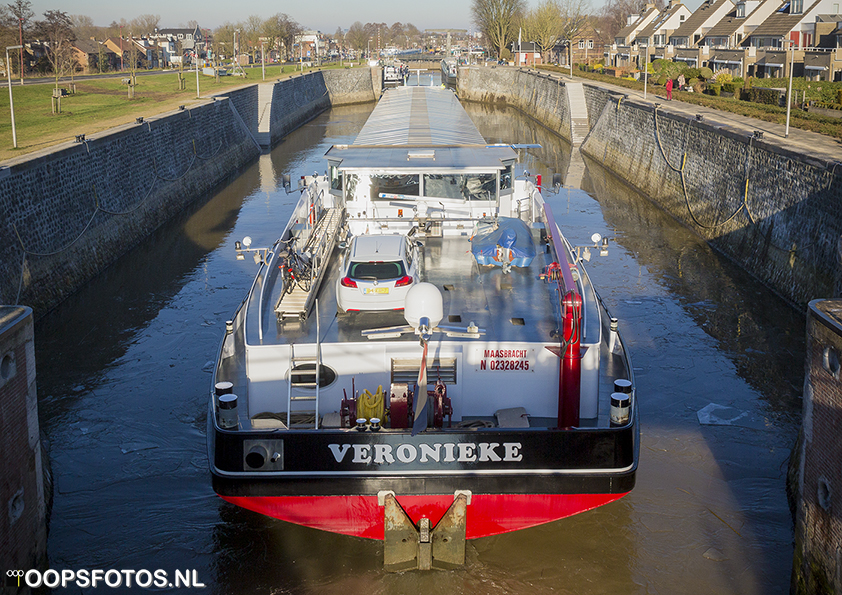 Bloemink: ‘Stuurmanskunst, daarvan was sprake toen het binnenvaartschip ‘Marieke’ gisteren de Koninginnensluis in Vreeswijk passeerde. De breedte van het schip, gecombineerd met de nauwe doorgang van de sluis, verraadden de stuurmanskunst(en) van de schipper. Aan beide zijden had het schip slechts enkele centimeters speling. Een bijzonder evenement.’