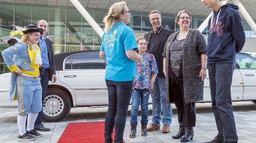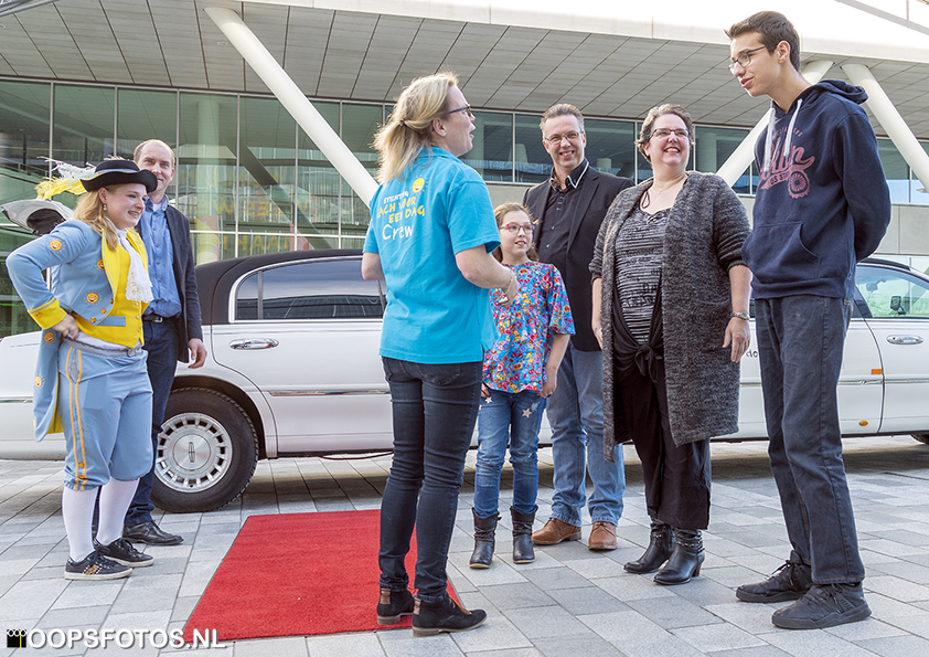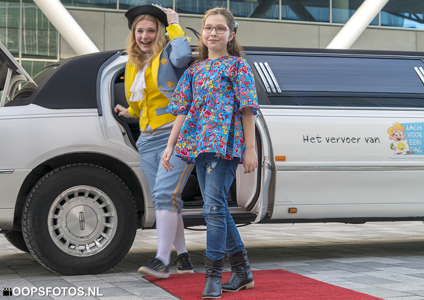 Voorafgaand aan de uitverkochte voorstelling ‘De Kleine Zeemeermin’ in DE KOM vanmiddag (zondag 24 februari) reed een heuse limousine van de stichting Lach voor een Dag bij het theater voor. De limousine bracht de Veenendaalse Manon, 10 jaar oud en ernstig ziek. Manon werd vergezeld door haar vader, moeder, grote broer èn een heuse page.