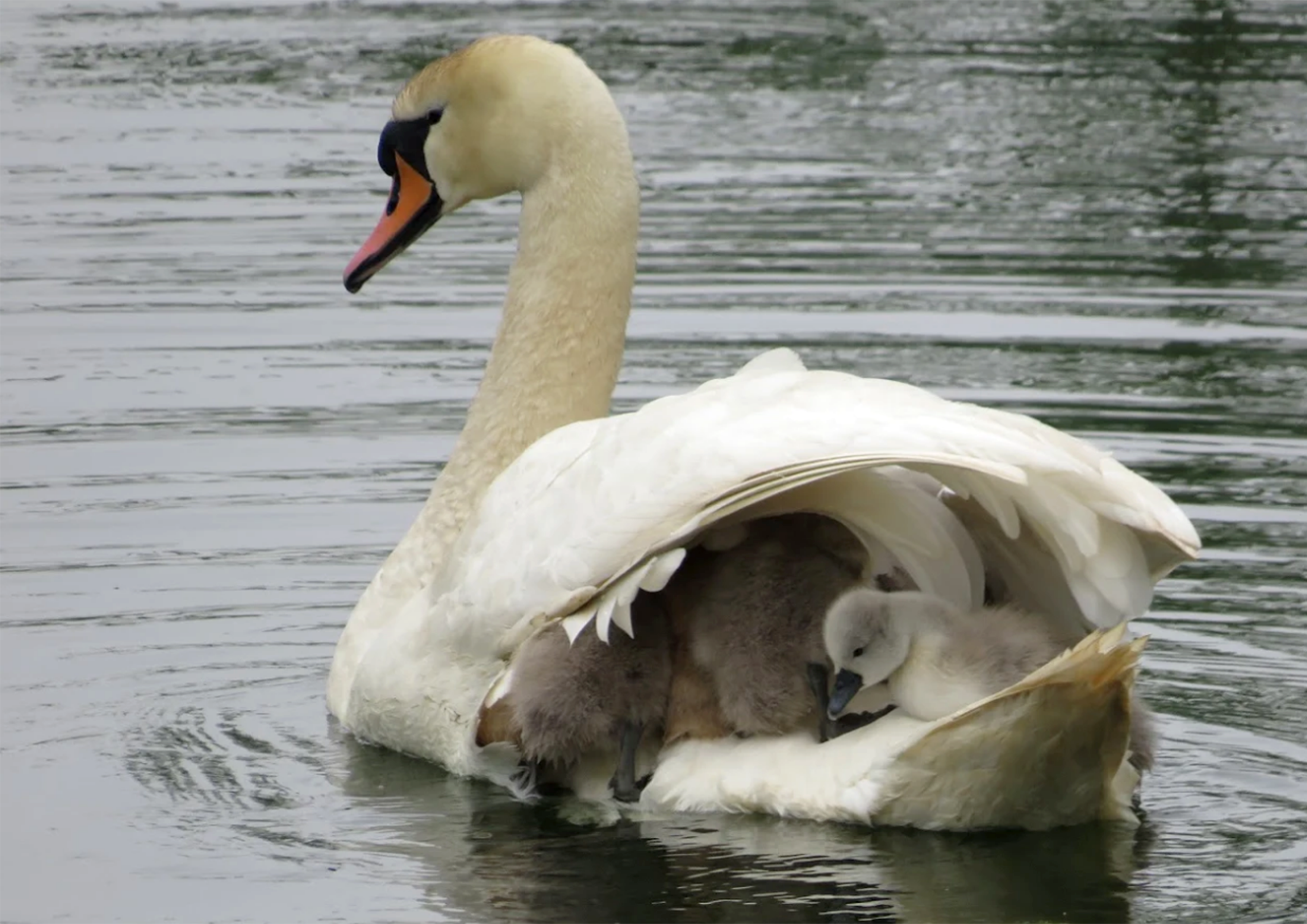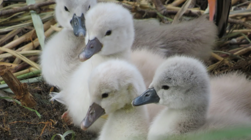 Arend Bloemink: ‘Trouwe lezeres, of is het in het geval van pen.nl: trouwe volgster (?), Ingrid van der Paauw ontdekte in de wijk Batau een nest met jonge zwaantjes. Ingrid maakte een aantal leuke foto’s van dat jonge spul. Maar de állerleukste foto is de foto waarbij Ingrid schrijft ‘jonge zwaantjes en die zitten natuurlijk ook heerlijk onder moeders vleugels.’’