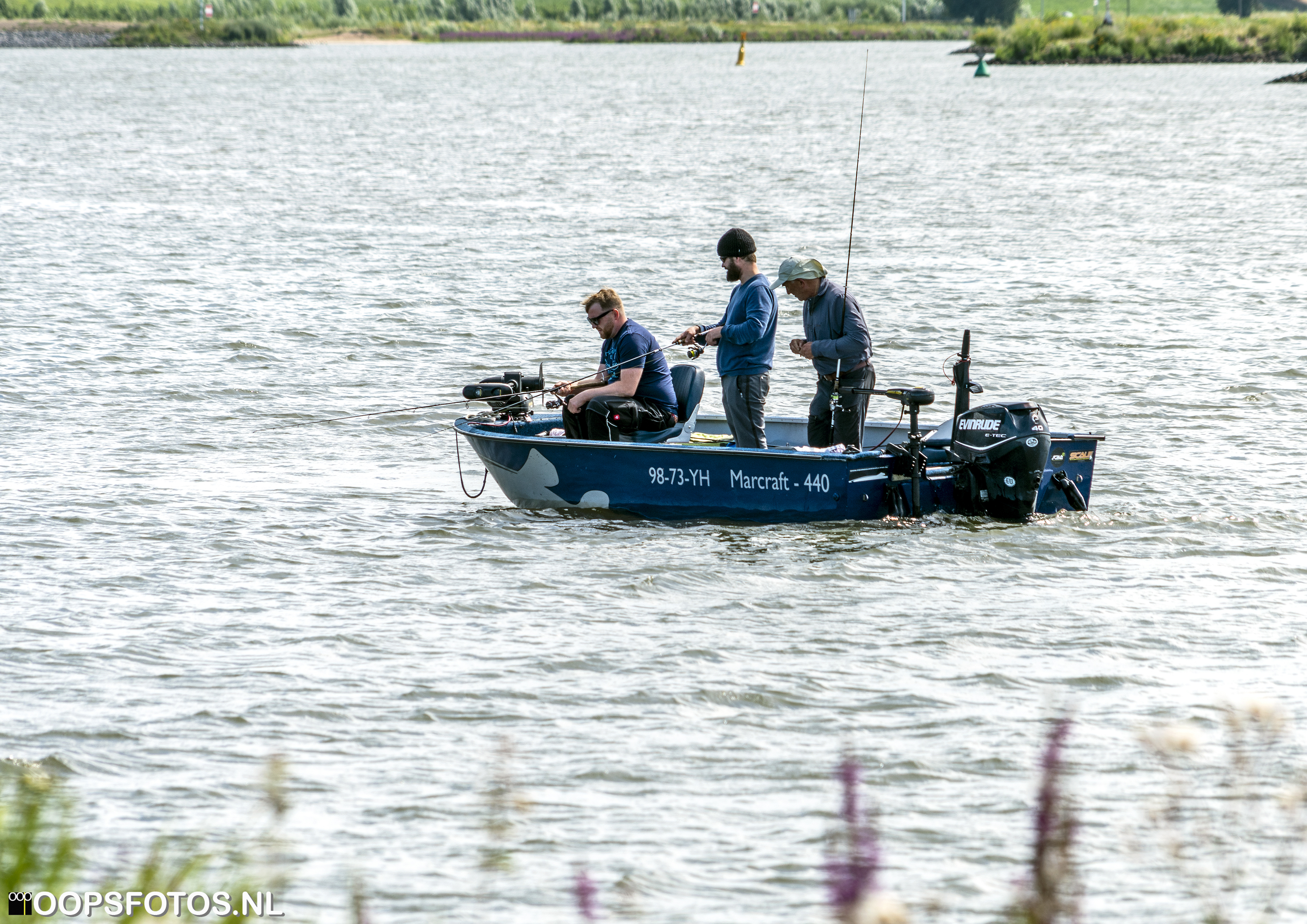Arend Bloemink: ‘Wat is er lekkerder dan je bij mooi weer je met vrienden in een bootje op de rivier De Lek door de stroom te laten meevoeren terwijl je al hengelend een visje probeert te verschalken… Deze drie hebben het mooi voor elkaar, ter hoogte van de Lekboulevard.’