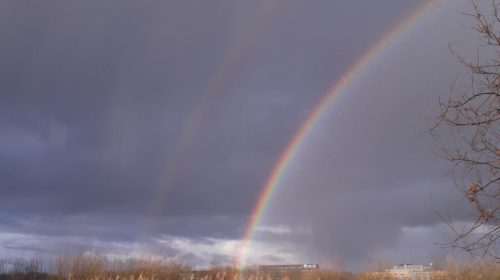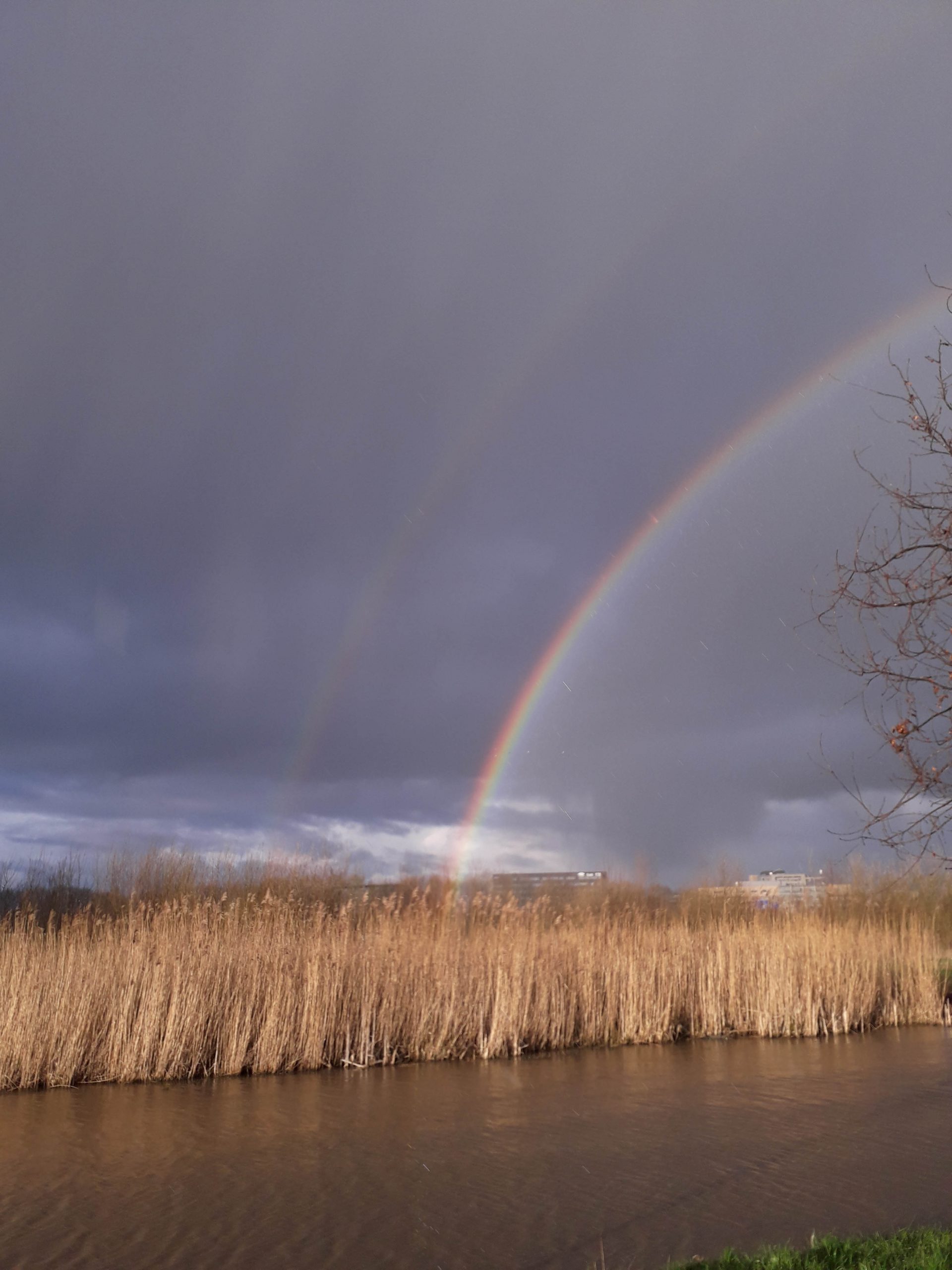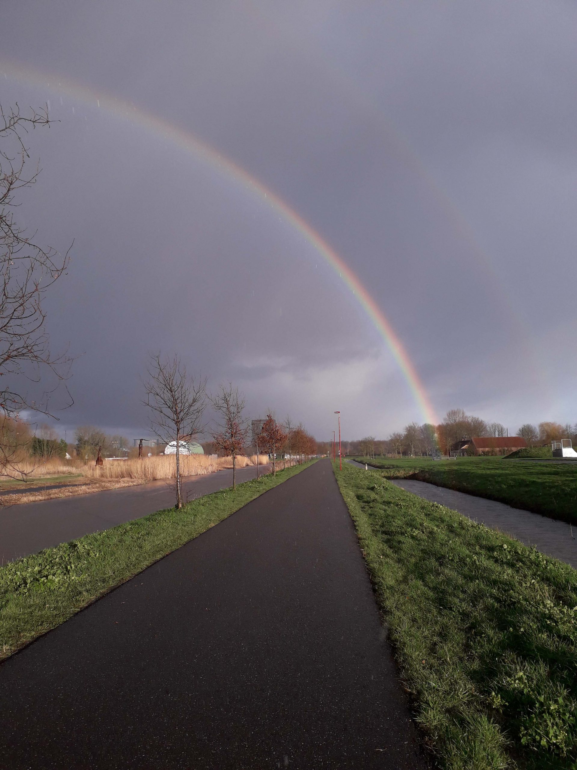 Peter Hamilton ‘Woensdagmiddag 26 februari jl. fietste ik van Nieuwegein naar Utrecht. Zo rond 17.00 uur was ik ter hoogte van de Galecopperlaan, bij de sportvelden van JSV. Ik zag daar een prachtige regenboog, zo mooi had ik die eigenlijk nog nooit gezien. Dus die moest ik wel fotograferen! Was even afgestapt en de regenboog goed bekeken. Een waardige foto voor de ‘Foto van de week’ toch?’ Nou zeker Peter, zie de foto’s hieronder.