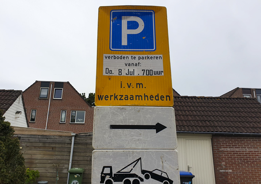 Arend Bloemink: ‘Altijd handig wanneer de gemeente, of een bedrijf dat al dan niet namens de gemeente, een klus gaat uitvoeren dat aan de buurtbewoners laat weten. Zoals bijvoorbeeld hier, aan de Weerterschans. Máár, 8 juli valt niet op een donderdag…’