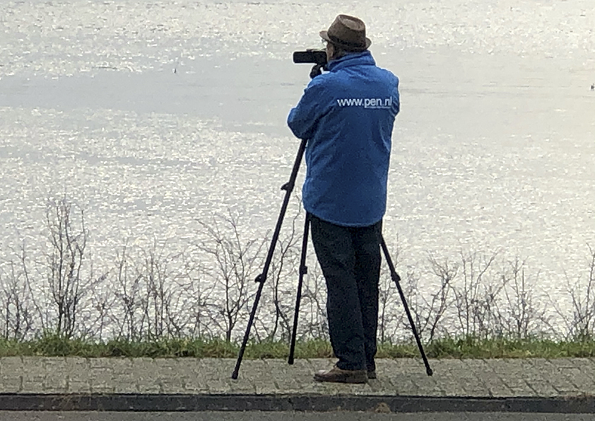 Arend Bloemink: ‘Daar staat hij dan. De eenzame man in zijn warme, blauwe jack: Jos van Vogelpoel, één van de videografen van pen.nl. Regen en wind trotserend aan de Lekboulevard om ons allen deelgenoot te maken van het wassende water.’