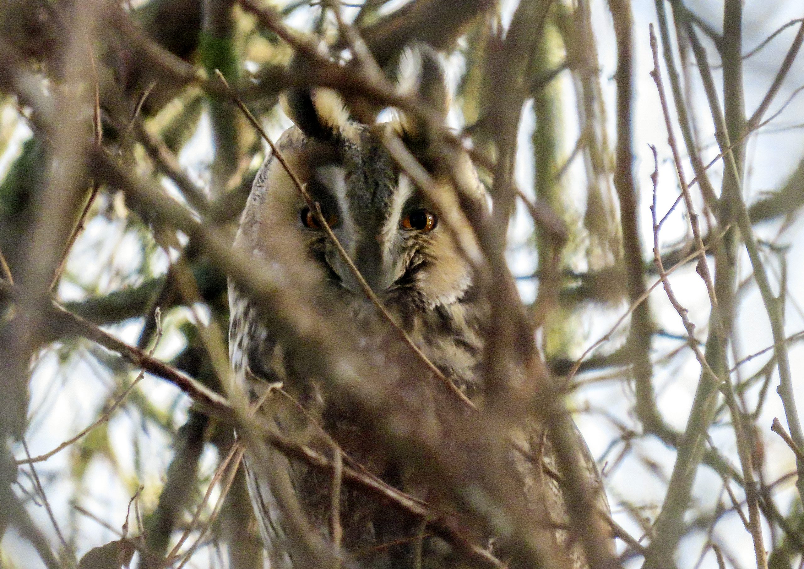 Arend Bloemink: ‘Van Tanja Hudepohl ontving ik deze week meerdere foto’s van een Ransuil. Ze gaf aan dat ze er deze week meerdere spotte en fotografeerde in Nieuwegein. Om te voorkomen dat de Ransuilen in hun dagelijkse doen en laten gestoord worden, houden we de exacte lokatie geheim. Zo doen vogelaars dat.’