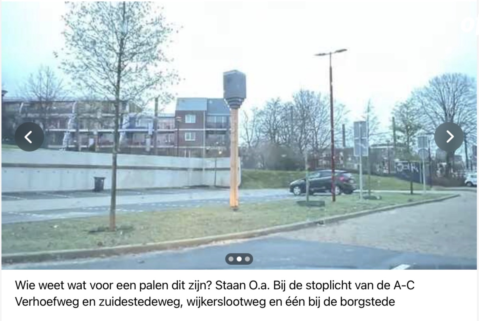 Arend: ‘Op Facebook kwam de redactie deze foto met vraag tegen. Nieuwsgierig als we zijn, namen we contact op met de gemeente. Nieuwegeins communicatieadviseur Naïma Kassttar zocht het uit en liet ons weten: ‘De palen zijn vleermuiskasten. Dit is vanwege de sloop van het gebouw aan de Luifelstede. Hier zaten vleermuizen en de kasten bieden een nieuw onderkomen voor vleermuizen.’