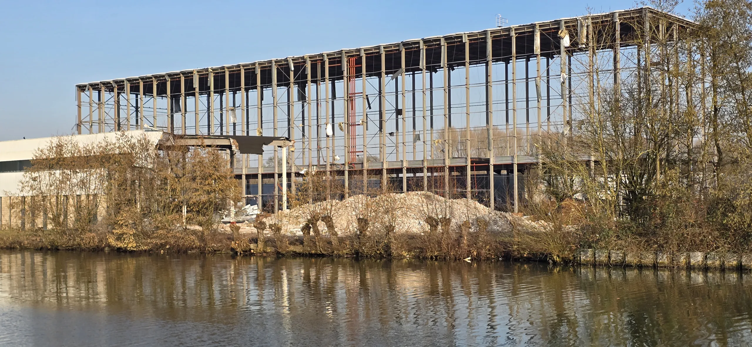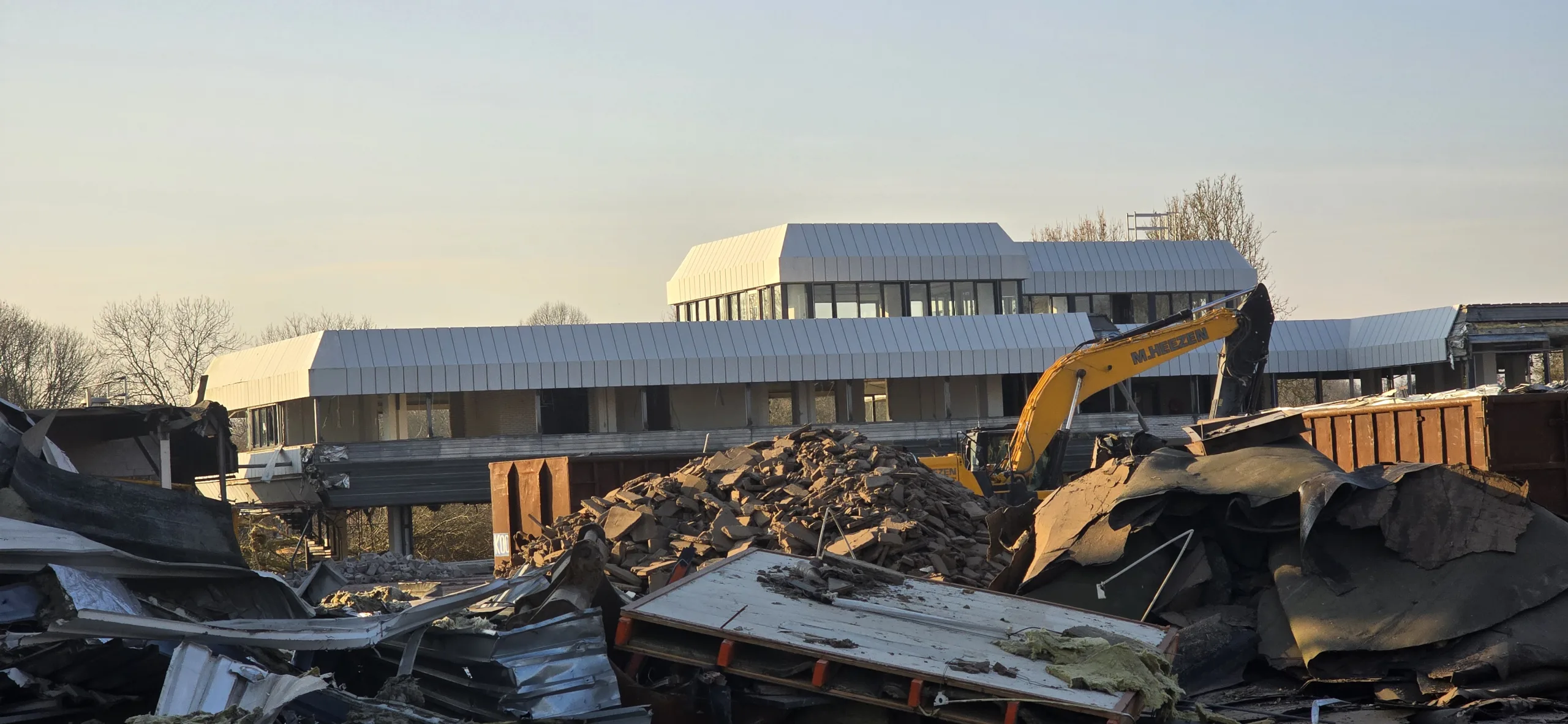 ‘Het is indrukwekkend om te zien hoe zo’n gebouw stukje bij beetje, heel zorgvuldig, wordt ontmanteld waarbij meerdere onderdelen van het gebouw voor hergebruik worden afgevoerd. Patrick trok stevige schoenen aan, pakte zijn camera en ging ter plekke om een en ander vast te leggen. Dat leverde meerdere foto’s op waaruit moeilijk een keuze voor de Foto van de Week kon worden gemaakt. Vandaar deze week een Foto(reportage) van de Week.’