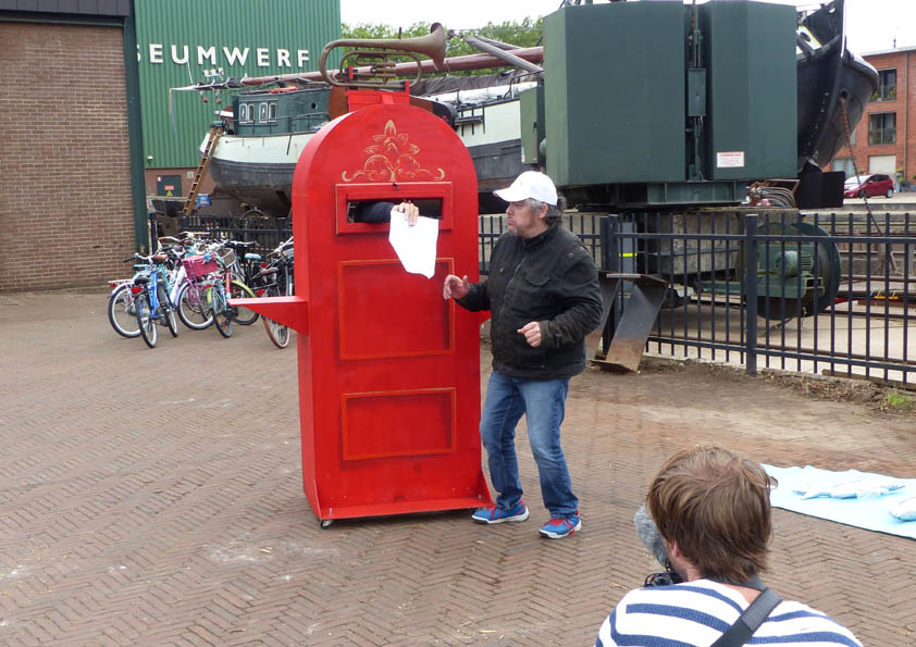 Bloemink: ‘Vandaag ontvingen we een foto die direct onze aandacht trok. Want, wát gebeurt hier? In eerste instantie vlogen onze gedachten en meningen alle kanten op. Totdat we in het bijgesloten berichtje lazen dat de foto een moment weergeeft van ‘Vogelvrij’. ‘Vogelvrij’ is een muzikaal theaterspektakel dat op 21 t/m 24 juni plaatsvindt op de Museumwerf. Nou, wanneer de foto een juiste weergave is van er te verwachten valt dan is het woord spektakel op zijn plaats.’