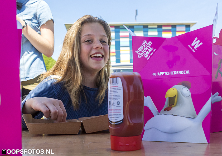 ‘De aanwezigen (ook de kinderen) lieten zich de Happy Chicken Deal goed smaken. De meningen over de Deal liepen enigszins uiteen, maar er was één aanwezige die tenminste drie Deals naar binnen werkte en ernstig overwoog nog wat mee naar huis te nemen. Voor vanavond…’