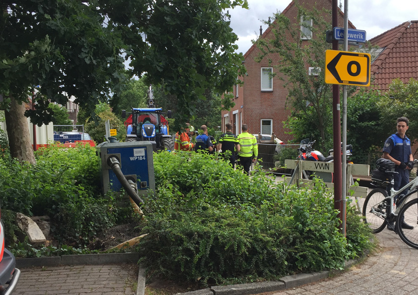 Toch was het lek nog niet helemaal gedicht. Netbeheerder Stedin is er hard mee bezig. Wat er precies mis ging bij het graven is niet bekend.