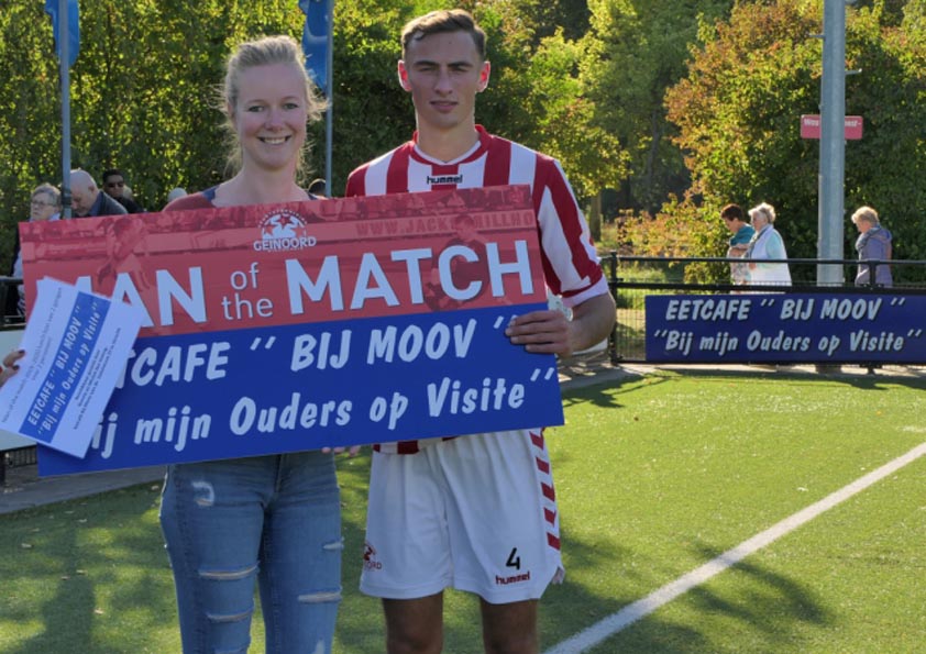 Sam Kolsteeg is tijdens de thuiswedstrijd tegen Benschop uitgeroepen tot ‘Man of the Match.’ Dit seizoen zijn Michel en Ronnie den Hartog bereid gevonden om de nieuwe sponsor van de ‘Man of the Match’ te worden. Zij stellen voor elke thuiswedstrijd een lunchbon van twee gangen voor twee personen ter beschikking. Hun eetcafé Bij Moov aan de Zadelstraat 22 in Utrecht.