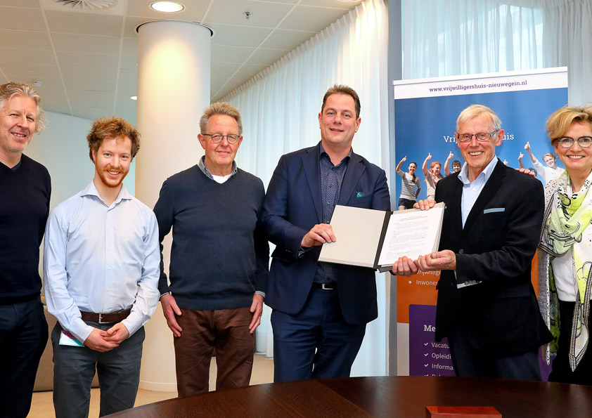 Op vrijdag 16 maart tekenden de gemeente Nieuwegein en het VrijwilligersHuis Nieuwegein een officieel document waarin de samenwerking tussen partijen wordt beschreven. ‘We gaan voor een langdurige samenwerking’ aldus de voorzitter van de Adviesraad bij het VrijwilligersHuis, de heer Henk van der Honing. “Om duidelijkheid te hebben over de taken van de partijen, is het belangrijk vast te leggen waar je op kunt rekenen als partner.“