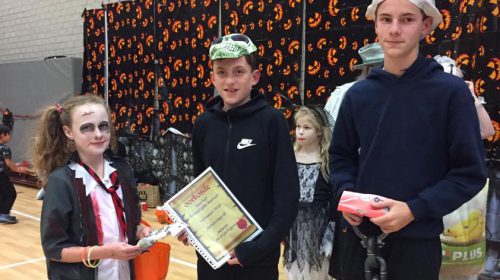 De drie prijzen voor de winnende kinderen met het griezeligste kostuum:
