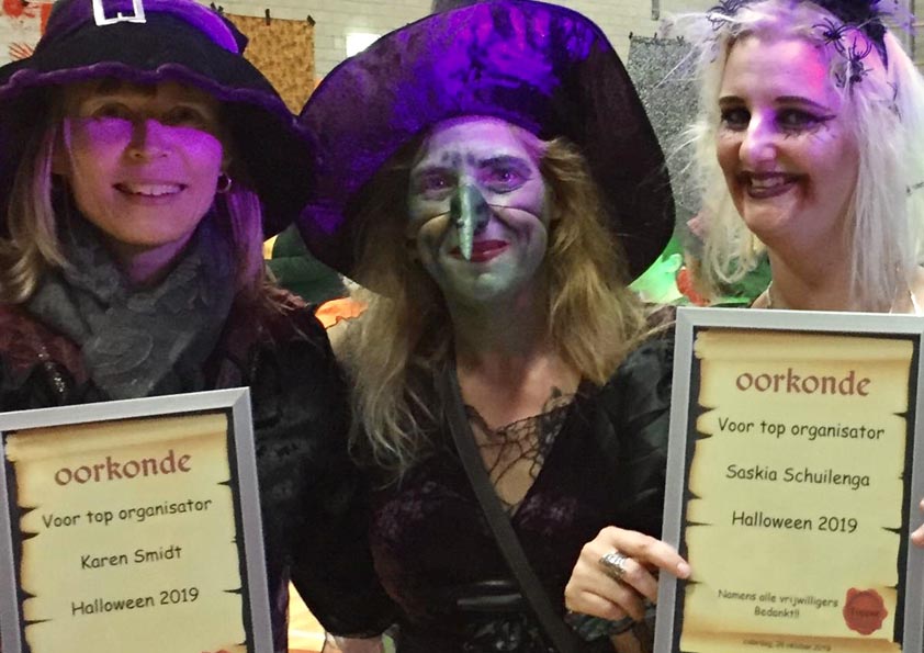 ‘Het was een fantastische Halloween, georganiseerd door Wijknetwerk Fokkesteeg. We bedanken al onze vrijwilligers en de MaS studenten die geweldig hard hebben gewerkt’ aldus het Wijknetwerk in Fokkesteeg. De coördinators Karen Schmidt en Saskia Schuilenga werden door de vrijwilligers extra in het zonnetje gezet voor de organisatie en schonken hen een oorkonde met “Top organisator Halloween 2019.”