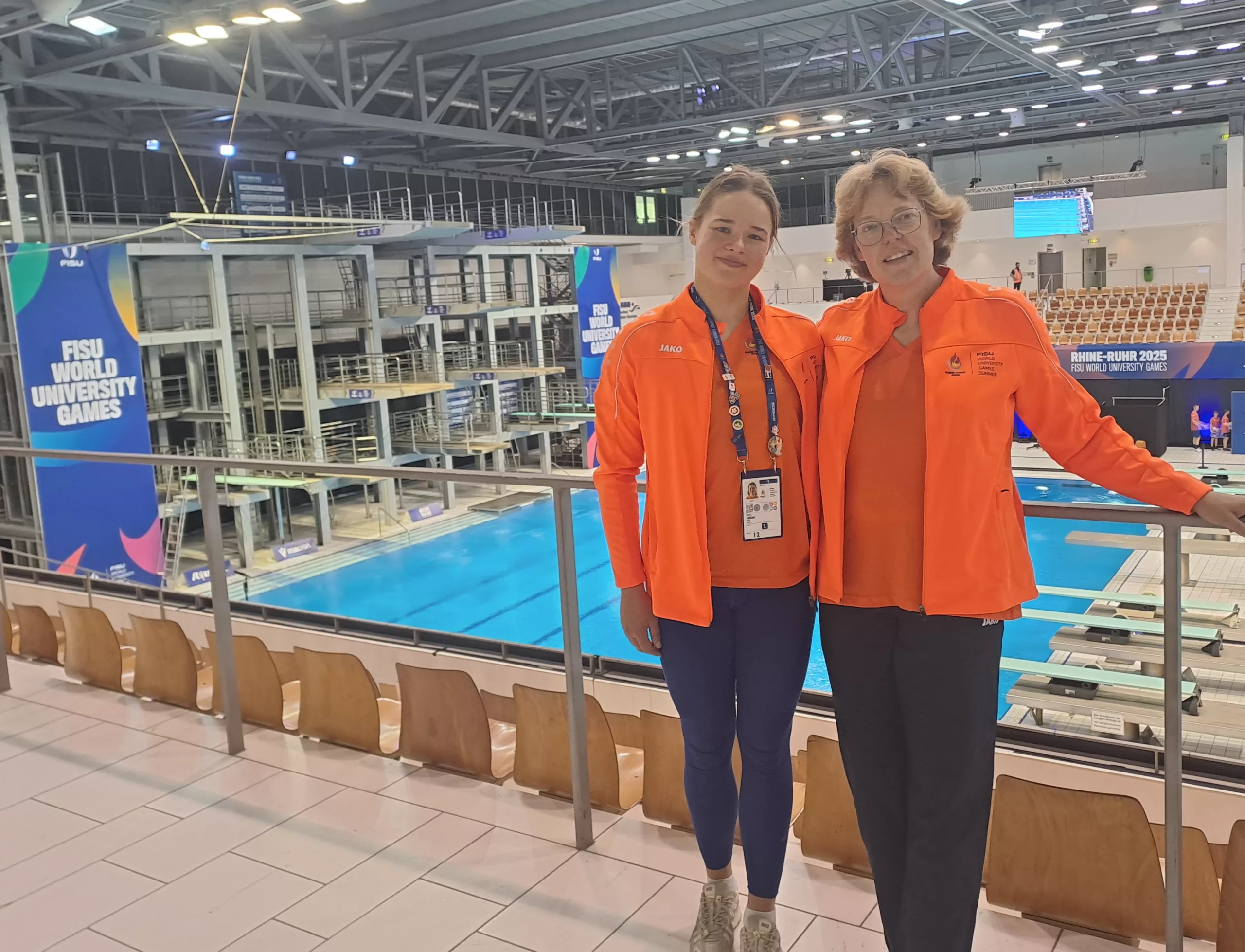 Een mooie afsluiting van een sterk springjaar voor de schoonspringster van zwemvereniging Aquarijn uit Nieuwegein. Eerder dit jaar werd ze kampioen van Nederland op de 1 meter plank en sprong ze naar de finale op de 1 meter in mei dit jaar bij de EK in Turkije. Hierbij werd ze 9de op dit onderdeel. En nu eindigde ze op de Universiade als 8ste op de 3 meter. ‘Ttijd voor een paar weken rust en dan gaan richten op springjaar 2026!’ aldus haar trainster Angelique de Vroome.