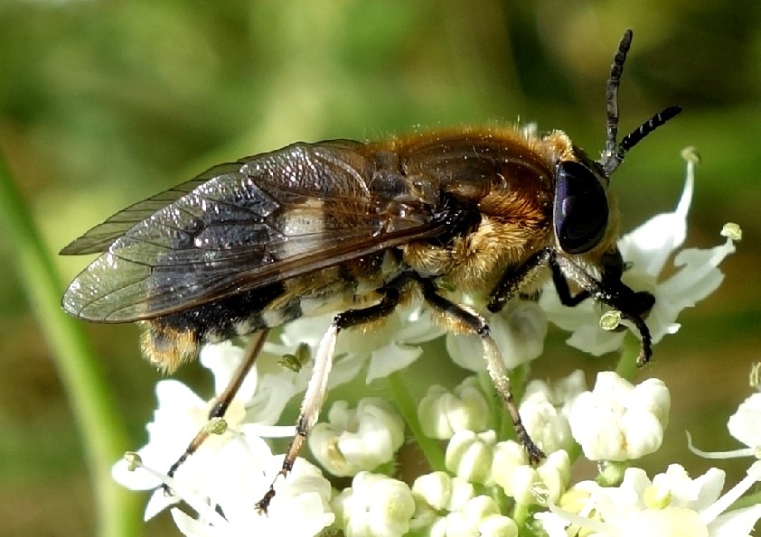 Udo: ‘Wapenvliegen zijn mooie, vaak metalliek gekleurde vliegjes. In Nieuwegein is de piepkleine, zwartwitte snuitwapenvlieg soms te bewonderen op een bloem in de tuin, maar er zijn ook enkele kanjers die wel wat lijken op een daas. Zoals de “harige langsprietwapenvlieg” van 1½ cm. (Nog) niet in de tuin…‘