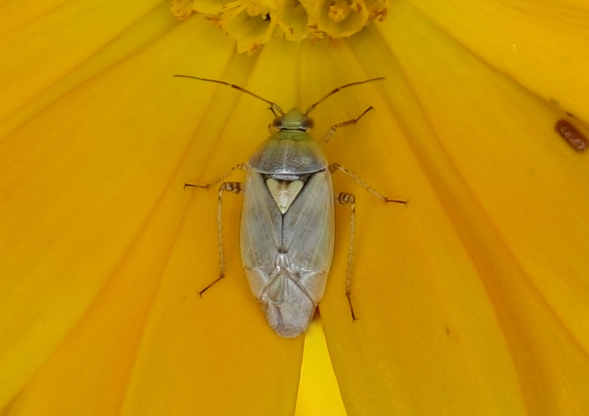 Udo: ‘De vele weilanden die Nieuwegein ooit telde zijn vrijwel allemaal verdwenen. De kleine bewoners daarvan zijn vaak noodgedwongen verhuisd naar bermen en tuinen. Ook deze weideschaduwwants zit in de tuin te chillen, niet in de schaduw maar in de volle zon op een goudsbloem…‘