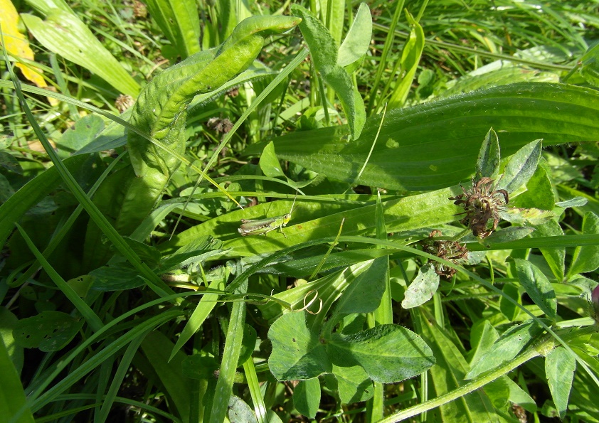 Udo: ‘Sommige insecten zijn schadelijk voor mensen, dieren of planten. Maar voor de meesten gaat dat niet op: ze moeten zien te overleven in een ingewikkelde wereld van een vegetatie vol spinnen en andere opvreters. Of maaimachines. Daarom deze keer een sprinkhaantje, kleiner dan 1 cm en nauwelijks te zien of te horen: Het Wekkertje.’