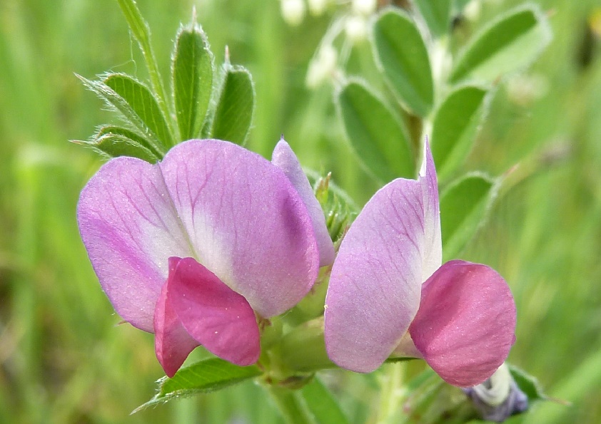 Udo: ‘Als u al in april langs een ruige berm wandelt, of langs een in Nieuwegein zeldzaam ruig veldje, dan gloort tussen de opschietende planten vaak al de voederwikke. Het is de vroegst bloeiende wikke, met paarsroze, kleine bloempjes die wel willen opvallen tussen al dat frisse groen.‘