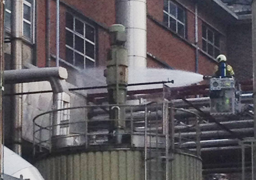 De brand zou ontstaan zijn bij het opstarten van een systeem, waarbij de twee stoffen, die gemengd werden, bij elkaar kwamen en een chemische reactie veroorzaakten. De politie en brandweer adviseerde eerder om ramen en deuren dicht te houden. Dit is inmiddels opgeheven. De omgeving blijft afgezet.
