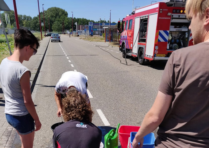 Medewerkers van het tegenoverliggende bedrijf ANAC zagen de brand ontstaan. Zij grepen direct in na het bellen van 112. Ook medewerkers van de Praxis en enkele voorbijgangers hielpen mee de brand te bestrijden. Hierdoor kon de bus van Clavis worden gered. Een getuige: ‘De bus van het bedrijf konden we niet van zijn plaats krijgen. Vermoedelijk een automaat. We hebben het vuur kunnen blussen voordat het in de buurt van de bus kwam. Dit deden we met emmers water van de wasstraat ANAC.’ De brandweer heeft alles nog nageblust.