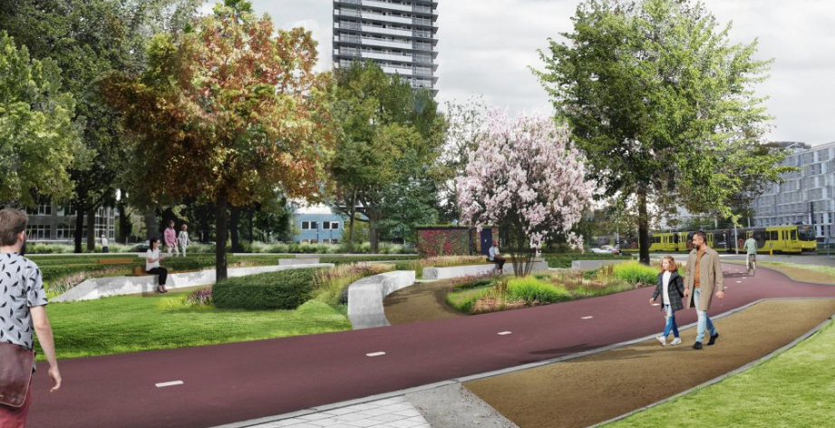 De gemeente is al een tijd bezig met het inrichten van de herdenkingsplek. “De plek verbeeldt de golf van emotie die vorig jaar door de stad heen ging”, vertelt projectleider Fred Nuwenhuis. “De looppaden lijken op een rimpeling die je in het water ziet als er een steen in valt. Langs de paden komt 150 meter aan banken. In totaal is er dan plaats voor 600 mensen om te zitten.”