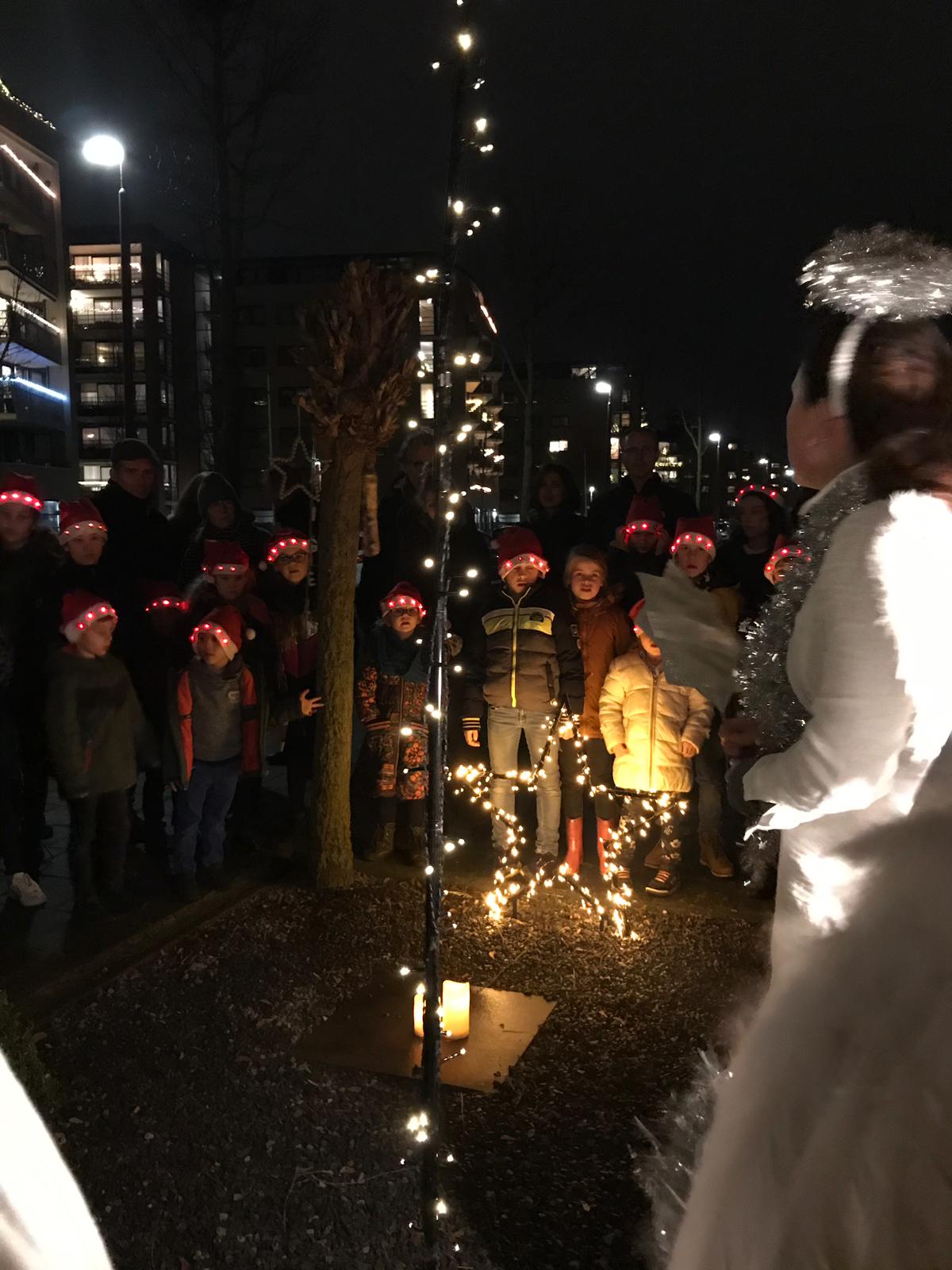 De leerlingen van de school liepen samen, met hun (groot)ouders en andere belangstellenden een route langs het kerstverhaal. Op hun tocht kwamen ze terecht in verschillende taferelen, waar telkens een deel van het kerstverhaal werd verteld en uitgebeeld door de leerkrachten van de school. Zo ontmoette de kinderen engelen, een Romeinse soldaat, reizigers, herders en tot slot kwamen ze bij de stal, waar ze door Jozef en Maria gastvrij werden verwelkomd.