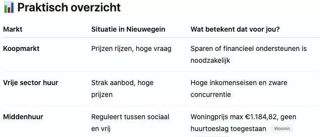 • De middenhuur biedt enige kans, maar is beperkt beschikbaar.