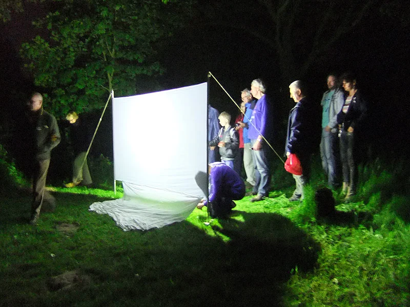 De organisatie: ‘We lokken de nachtvlinders o.a. op de bomen met een speciale stroop die ze lekker vinden en met twee grote doeken met licht erachter. Samen kijken we welke vlinders eropaf komen. Kinderen zijn welkom onder begeleiding. Neem een zaklantaren mee.’