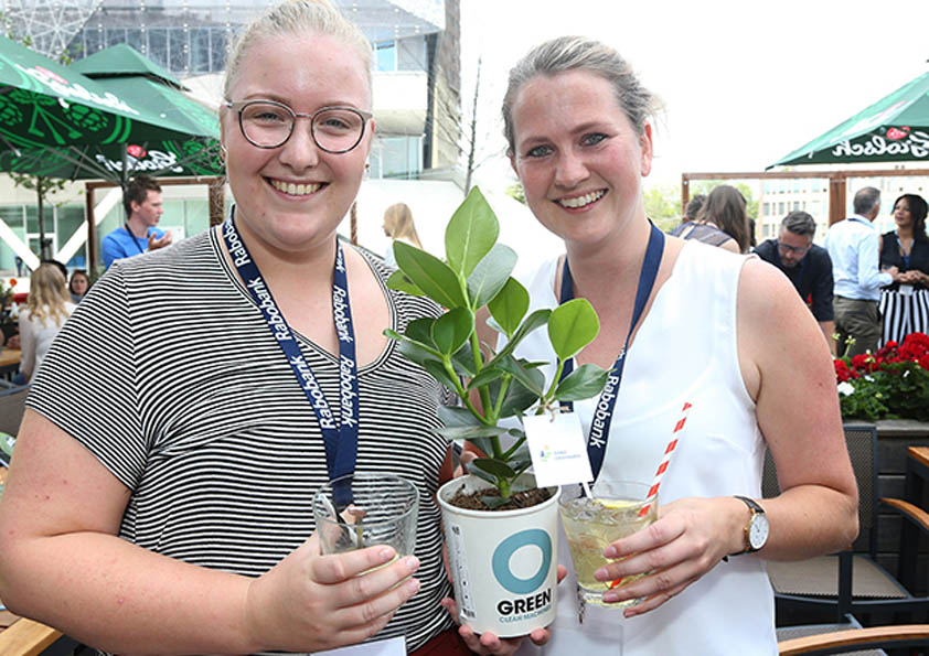 Marleen Verweij (links) en Laura Wierda maken hun match. Zij gaan in de zomervakantie samenwerken, waarbij Marleen haar bedrijfsidee daadwerkelijk gaat uitvoeren.