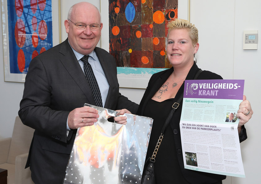Vrijdag 2 november 2018 heeft Joyce Jaylano Jayley het ‘veilig’ prijzenpakketje in ontvangst genomen uit handen van burgemeester Frans Backhuijs. Joyce is winnares van de Facebook quizvraag tijdens de Week van de Veiligheid van 8 tot en met 14 oktober. Er hebben in totaal 140 inwoners gereageerd op de vraag: Wanneer denkt u dat de meeste inbraken plaatsvinden? Het juiste antwoord is overdag.