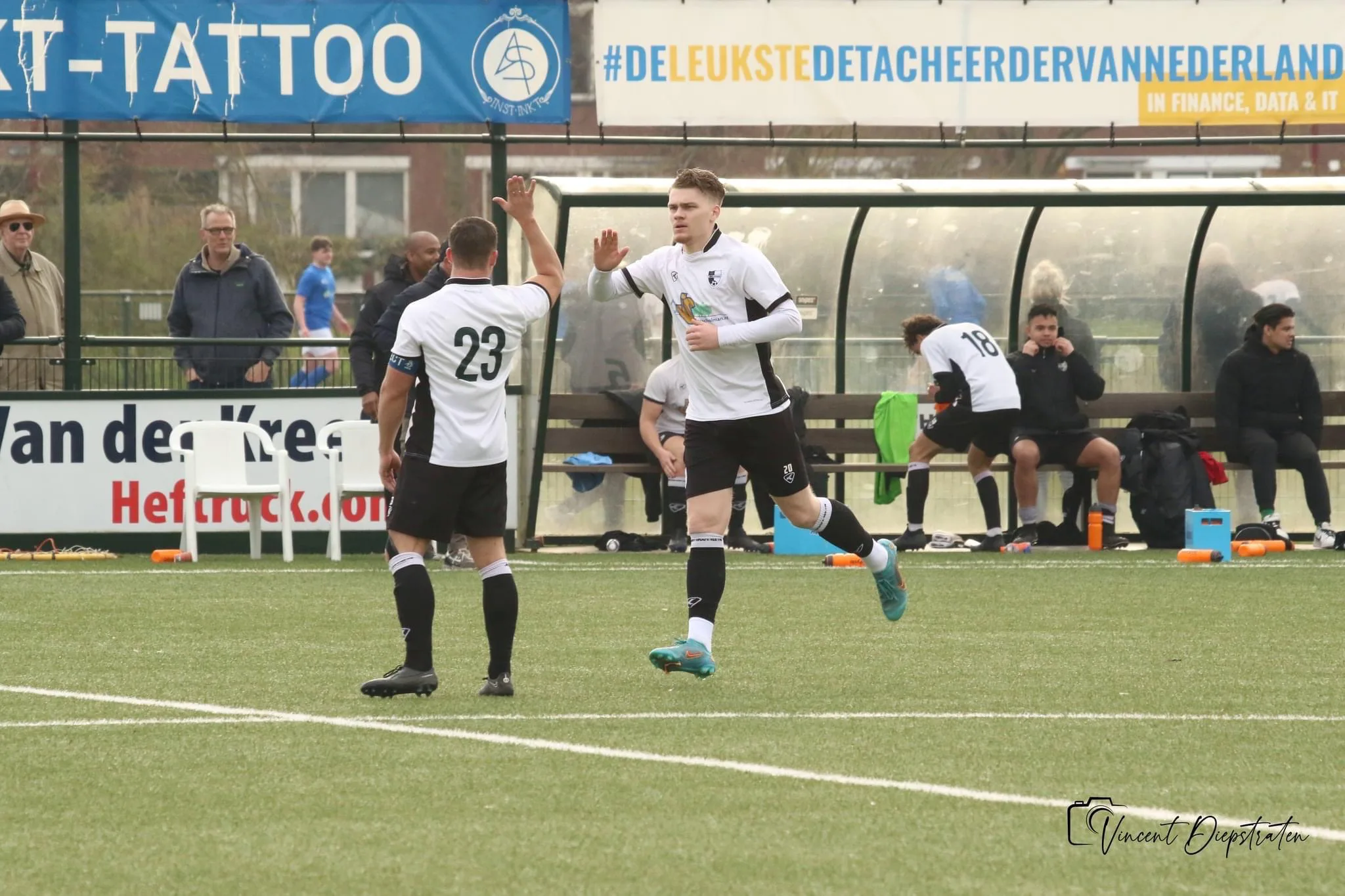 Amin Darghal en Calvin Vanokas kwamen binnen de lijnen en lieten zien waarom zij ook hun bijdrage mochten leveren. Amin dribbelde zich op de voor hem karakteristieke manier vrij en passeerde de keeper van Desto: 2-2. Maar een domme overtreding aan de rand van het eigen strafschopgebied niet lang daarna werd door Desto op waarde geschat en vlak voor tijd kwamen zij weer op voorsprong: 2-3. De moed zakte bij de vele toeschouwers in de schoenen.