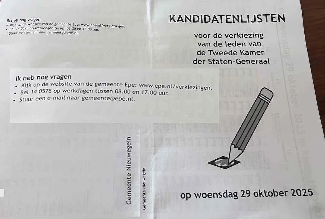 De fout zorgt voor verwarring, want de instructie lijkt te suggereren dat kiezers meer informatie moeten zoeken op een site die niets met Nieuwegein te maken heeft. De Kiesraad bevestigde eerder dat alle lijsten inmiddels onherroepelijk zijn vastgesteld, maar op lokaal niveau blijkt de communicatie nog wat te haperen.