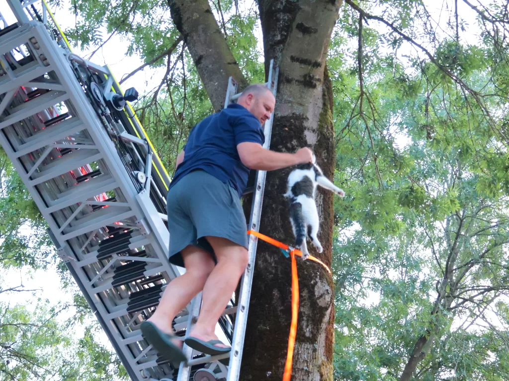 De eigenaren ontdekten via de airtag aan Tiggers halsband waar hun huisdier zich bevond. Zelf probeerden ze nog met een ladder naar boven te klimmen, maar de kat zat simpelweg te hoog. Daarop werd de brandweer ingeschakeld.