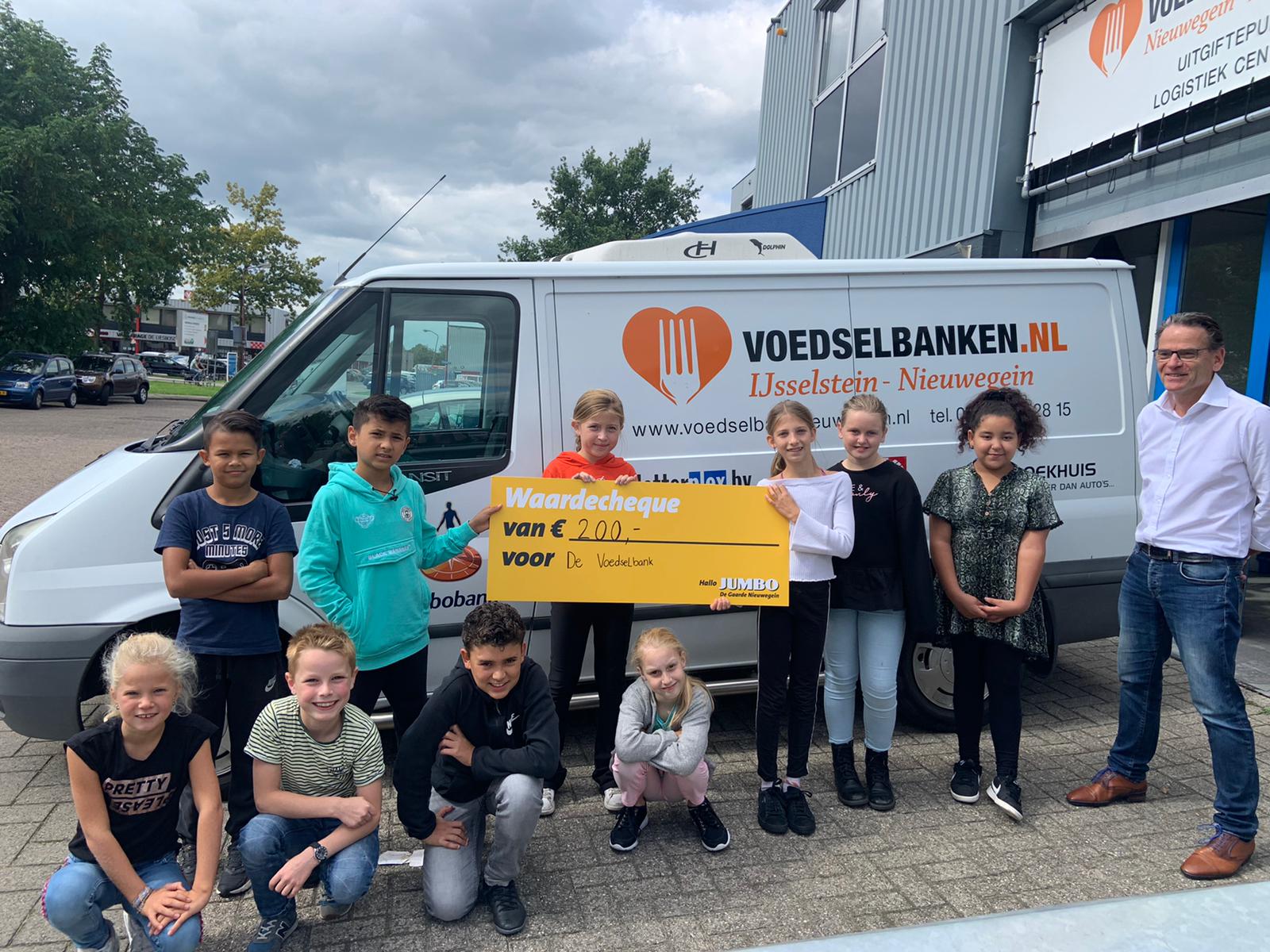 Enkele kinderen van de Margrietschool aan de Aardbeigaarde in Batau Zuid brachten onlangs een bezoek aan de voedselbank. Ze kregen daar een rondleiding, na het uitreiken van een cheque.  Voor de zomervakantie werd, samen met de Jumbo ‘De Gaarde’, een statiegeldactie gehouden. Dit leverde een mooi bedrag van € 200,– op. Dhr. Staal van de voedselbank vertelde wat de vrijwilligers doen voor mensen die te weinig geld hebben om zelf boodschappen doen. Voor de kinderen een leerzame ervaring.