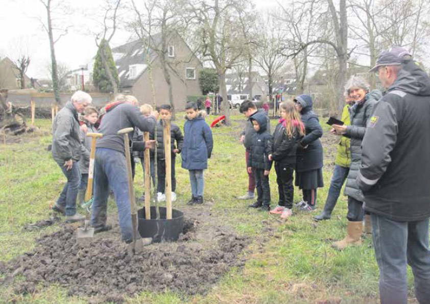 Ruim 25 kinderen van groep zes van de openbare basisschool De Veldrakker hebben, samen met wethouder Marieke Schouten, elf nieuwe fruitbomen en 250 struiken geplant Over een jaar of vijf kunnen de kinderen van ‘hun’ bomen peren komen plukken.Het thema van de 62ste Boomfeestdag in Nederland was: Ieder kind een boom. Het thema heeft vorm gekregen door een mooie samenwerking tussen de scholen, gemeente, vrijwilligers van landschap Erfgoed Utrecht en de plaatselijke afdeling van het IVN.