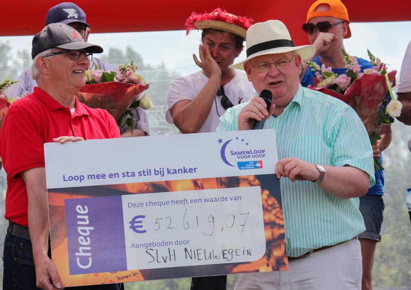 Burgemeester Frans Backhuijs maakt het opgehaalde bedrag bekend van de eerste editie
