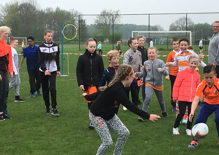 Na het gezellige ontbijt begonnen de kinderen aan een sportieve dag. De jongste bleven op school waar een prachtige stormbaan was uitgezet. De hogere groepen kwamen in actie op de JSV velden met allerlei balspellen. Het was weer een feestelijke dag op Lucas Galecop waar samen sporten, elkaar aanmoedigen en vooral veel plezier hebben de sleutelwoorden waren. Leerlingen waren opgeroepen om in het oranje of rood, wit en blauw naar school te komen.