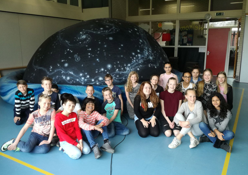 De leerlingen van basisschool Lucas Galecop waanden zich maandag 9 april j.l. even in de ruimte. Tijdens de project week van wetenschap & techniek konden de kinderen van groep 5 t/m 8 kennis maken met de sterrenhemel.