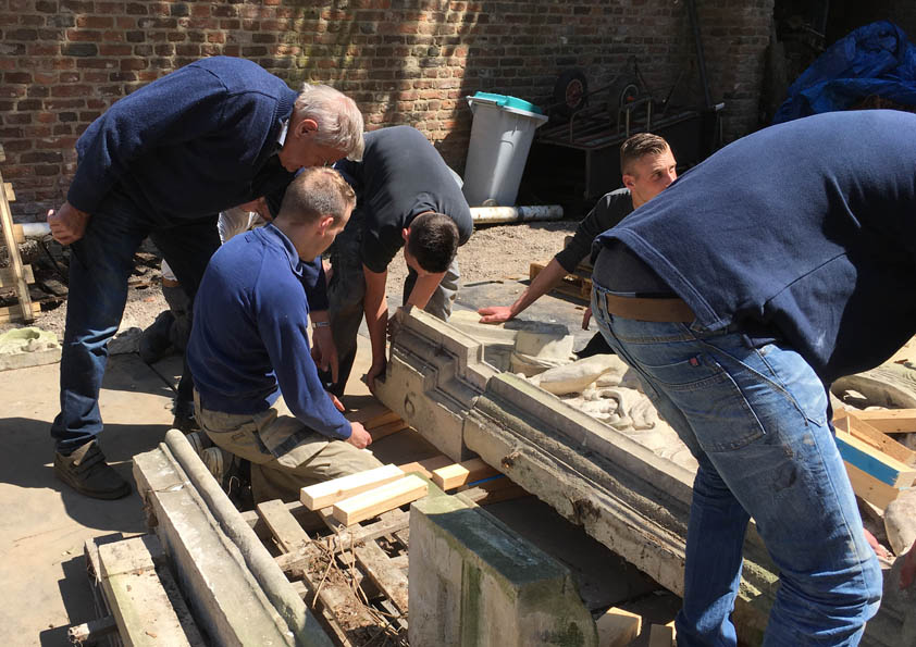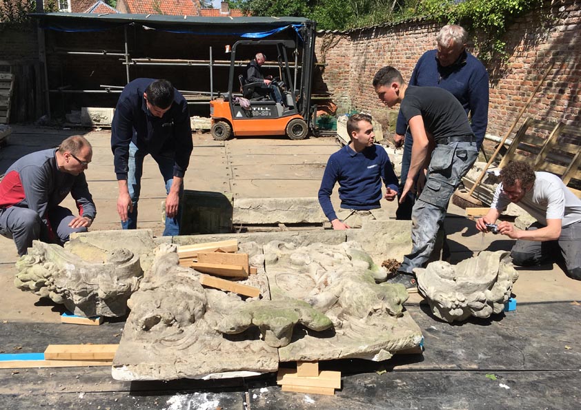 De poort bestaat uit een groot aantal stenen blokken. De studenten hebben de blokken in de originele vorm gelegd. Hiervan wordt een mal gemaakt. Het projectteam ontwerpt vervolgens een constructie voor de blokken. “Een project als dit is zeldzaam. De studenten werken meestal met platen en niet met dergelijke massieve blokken. Vooral het til-en stelwerk was een grote uitdaging en er moest goed worden samengewerkt”, vertelt Corry Kussendrager, docent van de natuursteenopleidingen.