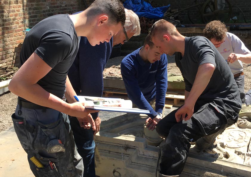 Projectleider Diane Visser heeft voor dit doel een Euregio-subsidie toegewezen gekregen. Met dit budget worden de werkzaamheden, al lerende, door studenten uit het mbo uitgevoerd. Hendrik Jan Tolboom van de Rijksdienst voor het Cultureel Erfgoed heeft de enige natuursteenopleiding van Nederland erbij betrokken.