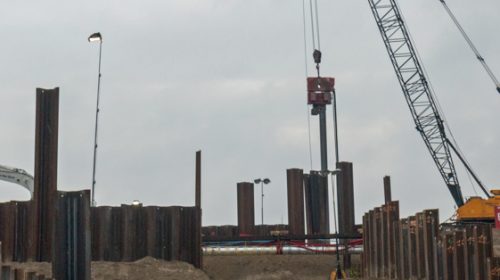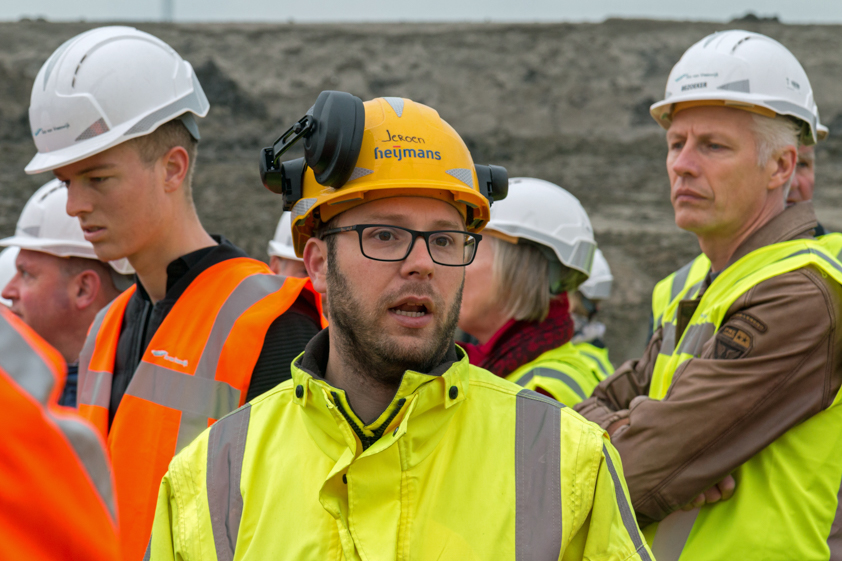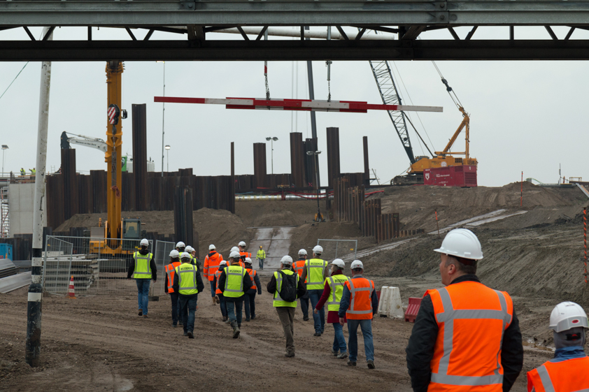 Paul: ‘Met het intrillen van enorme damwanden voor de nieuwe tunnel onder het Waterliniedok wordt immers weer een interessante mijlpaal bereikt. Ruim 30 deelnemers kregen – na een korte veiligheidsinstructie – hesjes en helmen om veilig bouwterrein te betreden…’