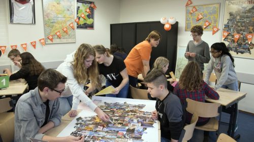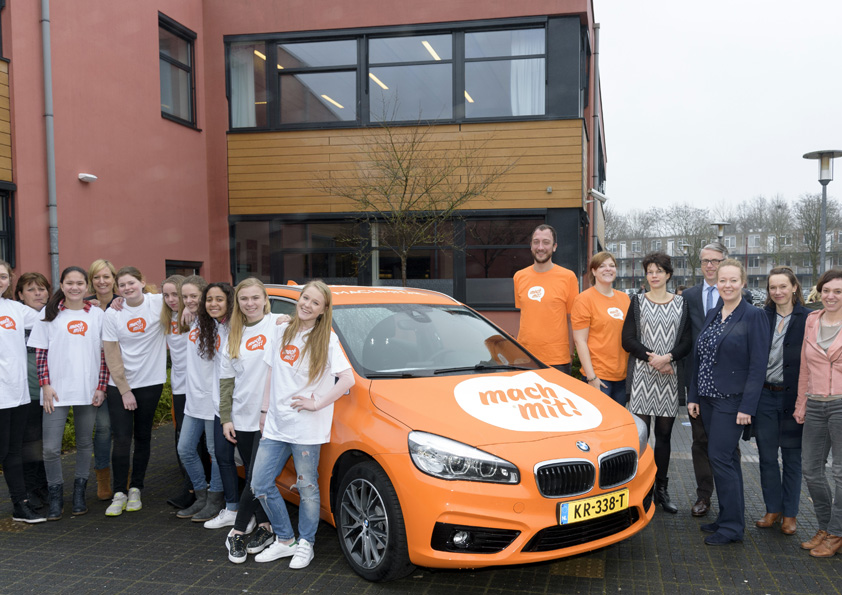 Vandaag, maandag 20 februari 2017, vierde het Mach-mit-Mobil van de Actiegroep Duits een mijlpaal: Het is vijf jaar geleden dat de knaloranje BMW er voor het eerst op uit trok om op middelbare scholen, ROC’s en hogescholen bij jongeren de interesse voor Duitsland en de Duitse taal aan te wakkeren. Op deze feestelijke dag ging het Mach-mit-Mobil naar dezelfde school als tijdens het allereerste bezoek in 2012: naar het Cals College in Nieuwegein.