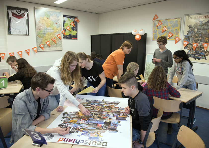 Tijdens de feestelijke bijeenkomst vertelde de bemanning van de Mach-mit-Mobil, bestaande uit twee taalassistenten van de Deutscher Akademischer Austauschdienst (DAAD) en EP-Nuffic, over hun bezoeken aan Nederlandse scholen: “We horen vaak van de scholieren dat ze niet verwacht hadden dat ze ons zo goed konden verstaan”, aldus taalassistente Annika Fiebig. “En zo laten we op een leuke manier zien dat Duits ook makkelijk is”, vult haar collega Julian Ide aan.