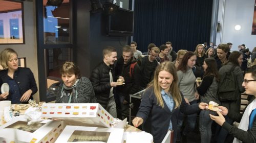 Om het feest compleet te maken werd samen met leerlingen van het Cals College een verjaardagstaart aangesneden en geposeerd bij de flitsende oranje Mach-mit-Mobil. Vertegenwoordigers van de Actiegroep Duits blikten terug op de afgelopen vijf jaar en keken vooruit naar de toekomst van het schoolvak Duits in Nederland.