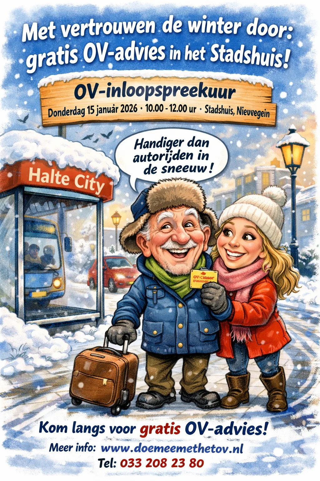 Om dat makkelijker te maken is er in Nieuwegein een gratis OV-inloopspreekuur. Je loopt binnen zonder afspraak en krijgt rustig uitleg van OV-ambassadeurs. Het OV-inloopspreekuur is op donderdag 15 januari 2026 van 10.00 uur tot 12.00 uur in het Stadshuis aan het Stadsplein 1c in Nieuwegein.