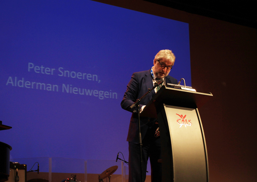 Wethouder Duurzaamheid Peter Snoeren prees het initiatief van de leerlingen om een mondiaal thema als Duurzaamheid op de kaart te zetten. “Het thema duurzaamheid vraagt om een grensoverschrijdende blik, en tegelijkertijd om een lokale aanpak. ‘Think global, act local”, was zijn boodschap van zijn toespraak bij de opening van de conferentie.